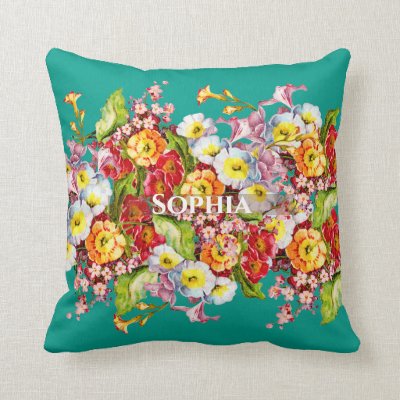 Vintage Art Floral Pattern Spring Flowers Primrose Throw Pillow